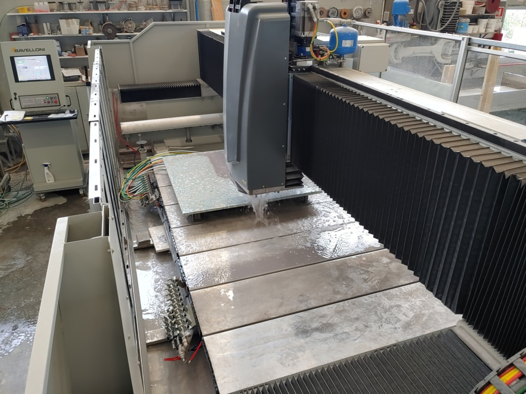 Il presente progetto è concepito per poter apportare in azienda nuova tecnologia in grado di effettuare tagli e lavorazioni avanzati portando dunque un nuovo servizio alla clientela ed una capacità produttiva più avanzata per la società. Marmo Equipe prevede l’acquisto di un innovativo centro di lavoro per eseguire lavori di altissima qualità, il nuovo sistema, unico centro di lavoro a controllo numerico “StoneNGR 300 IG POWERJET”. La tecnologia, di ultimissima generazione nel campo delle lavorazioni su superfici marmoree e granitiche, riesce attraverso speciali filtri a riutilizzare l’acqua nel processo di raffreddamento portando dunque ad un minore utilizzo delle risorse idriche ed abbattendo gli sprechi.